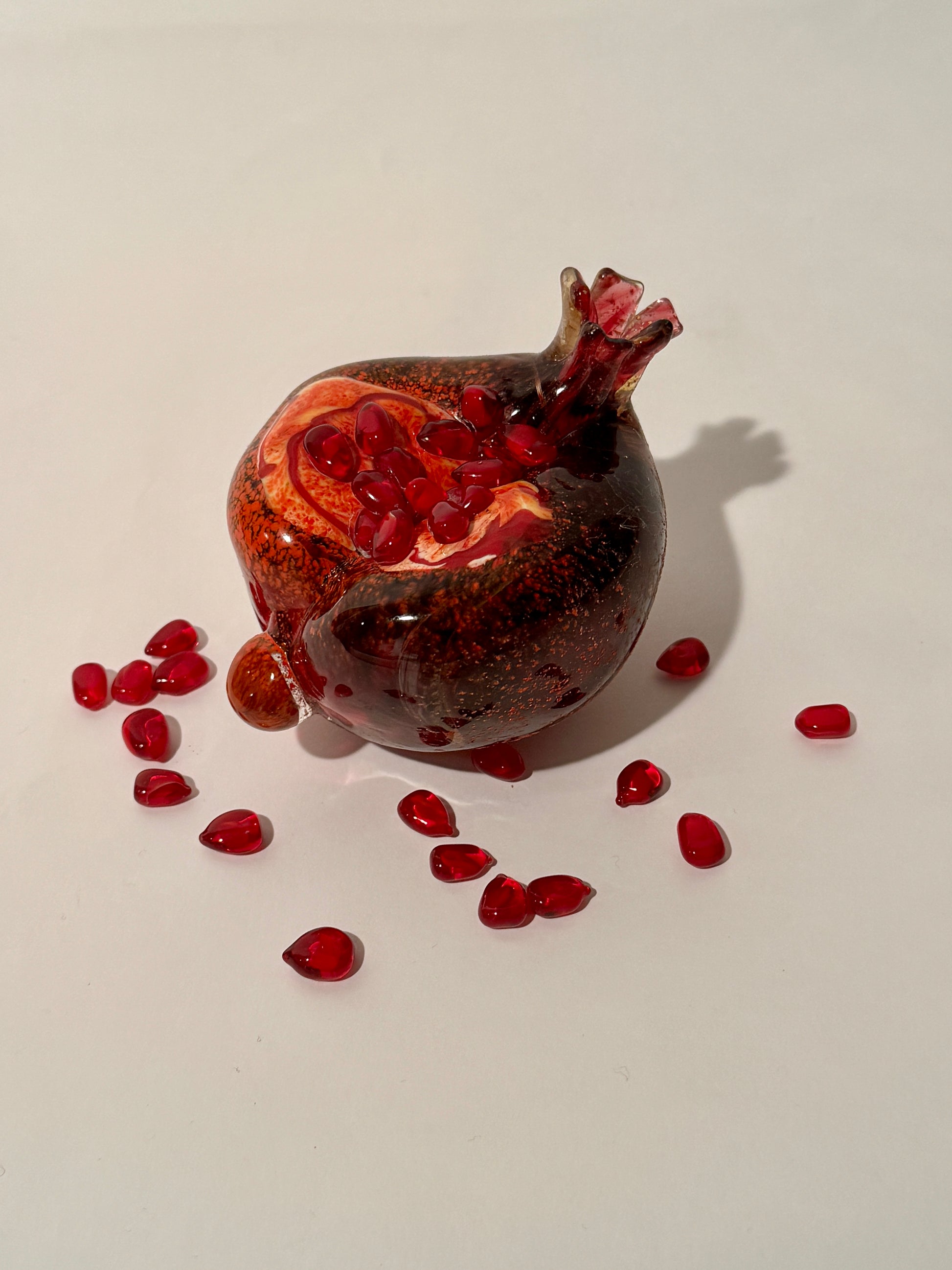 Hand-blown, one of a kind pomegranate sculpture and seeds